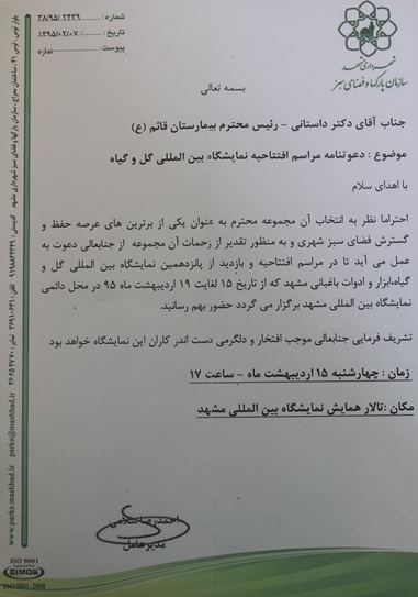 اخبار 13 ارديبهشت 1395 14 ارديبهشت 1395 بازدید: 552 امتیاز: ( 0 Rating ) انتخاب مرکز قائم(عج) به عنوان یکی از برترین مراکز حفظ و گسترش فضای سبز امتیاز کاربران لطفا رای دهید رای 1 رای 2 رای 3 رای 4 رای 5 انتخاب مرکز قائم (عج) به عنوان یکی از برترین مراکز حفظ و گسترش فضای سبز قبلی بعدی