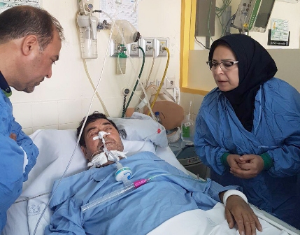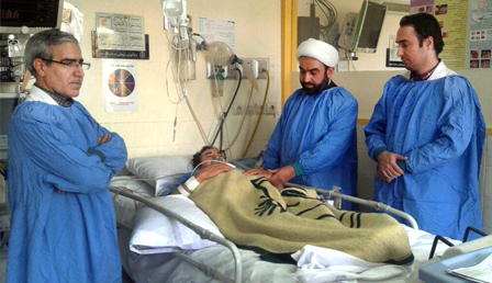 | عیادت مدیر جدید مرکز، جناب آقای دکتر مهری به همراه جمعی از همکاران کادر پرستاری و اداری از همکار عزیزمان جناب آقای غلامحسین معراجی نسب در ICU بزرگسالان | ||
