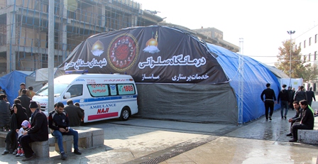 1- برپایی درمانگاه مدافعین حرم در محل عرصه میدان شهدا با مساحتی بالغ بر500 متر مربع و با کمک و مساعدت واحد بهداری شهرداری محترم مشهد و امکانات و تجهیزات کامل پزشکی و درمانی ازتاریخ 25/8/96 لغایت 28/8/96 به صورت شبانه روزی 2- استقرار پایگاه امداد در دبیرستان علامه حلی محل اسکان زائرین حضرت رضا (ع) از تاریخ 25/8/96 لغایت 28/8/96