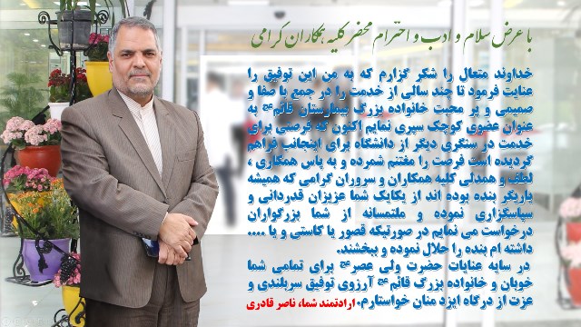 اخبار 11 دی 1397 11 دی 1397 بازدید: 1078 امتیاز: ( 0 Rating ) متن خداحافظی جناب آقای ناصر قادری، حراست اسبق مرکز آموزشی، پژوهشی و درمانی قائم(عج) امتیاز کاربران لطفا رای دهید رای 1 رای 2 رای 3 رای 4 رای 5 متن خداحافظی جناب آقای ناصر قادری، حراست اسبق مرکز آموزشی، پژوهشی و درمانی قائم(عج) قبلی بعدی