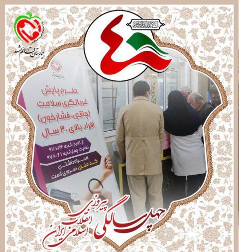 | کسب رتبه اول بیمارستانی استانی و رتبه سوم کشوری پیشرو در طرح ملی پایلوت غربالگری سلامت ایرانیان بالای 30 سال در چله انقلاب | ||