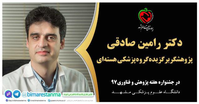 کسب عنوان "پژوهشگر برگزیده گروه پزشکی هسته ای" در جشنواره هفته پژوهش و فناوری97 دانشگاه علوم پزشکی مشهد توسط دکتر رامین صادقی، دانشیار محترم گروه پزشکی هسته ای بیمارستان قائم(عج) |