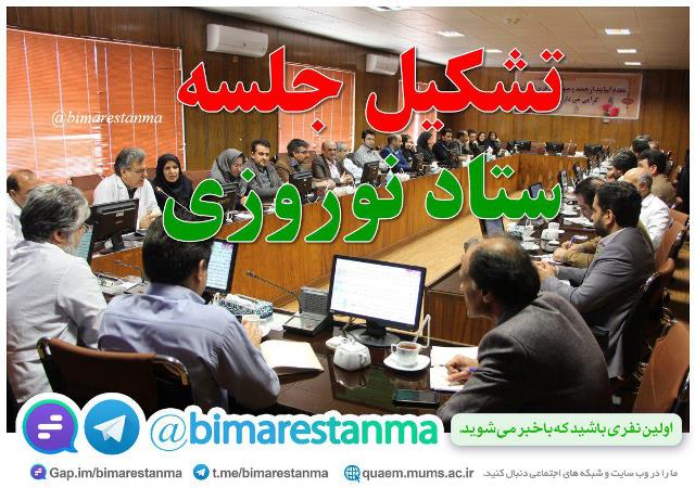 اولین جلسه ستاد نوروزی بیمارستان قائم(عج) جهت برنامه ریزی در ایام نوروز و ایجاد هماهنگی لازم بین مسئولین واحد های مرکز برگزار گردید. |