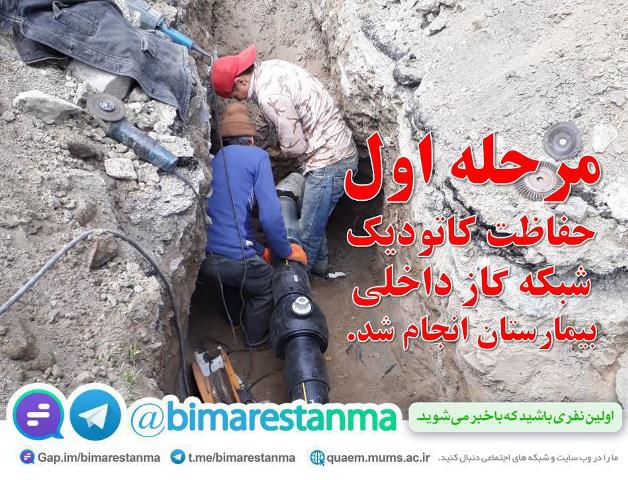 مرحله اول حفاظت کاتودیک شبکه گاز داخلی بیمارستان قائم(عج) انجام شد. |