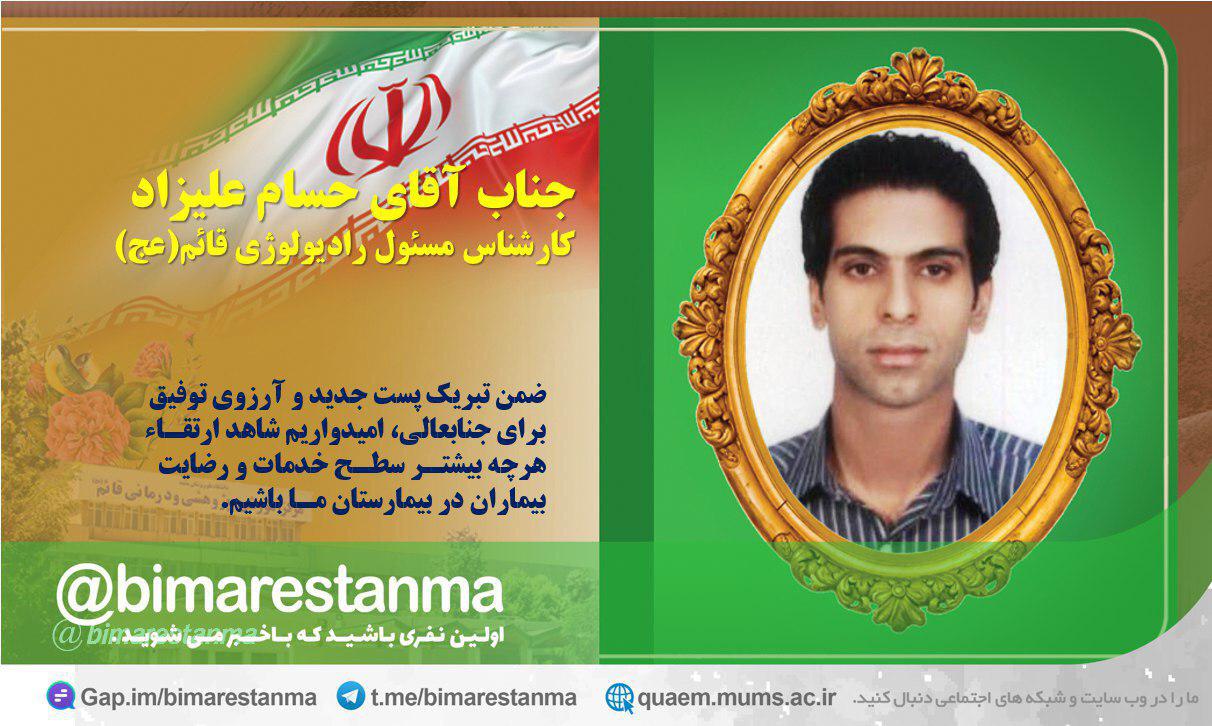 ضمن تبریک پست جدید و آرزوی توفیق برای جنابعالی، امیدواریم شاهد ارتقاء هرچه بیشتر سطح خدمات و رضایت بیماران در این مرکز باشیم.