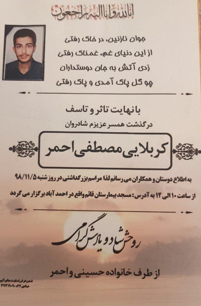 به اطلاع همكاران خدوم #بیمارستان_ما مي رسانيم مراسم ترحيم مرحوم كربلايي مصطفي احمر همسر فقيد همكار ارجمندمان سركار خانم حسيني روز شنبه از ساعت ١٠:٠٠ تا ١٢:٠٠ در مسجد بيمارستان برگزار مي شود .لذا با توجه به عملكرد ايثارگرانه سركار خانم حسيني در جريان اهدا اعضا بدن همسرشان بجهت تسليت از كليه همكاران دعوت مي شود تا با حضور خود تسلاي دل رنج ديده ايشان باشيم .