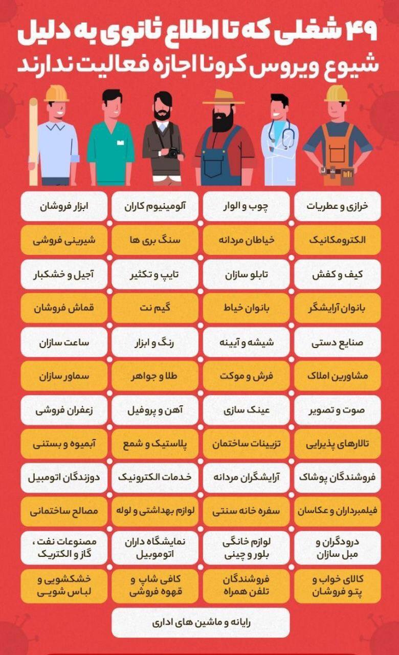 اخبار 30 فروردين 1399 30 فروردين 1399 بازدید: 148 امتیاز: ( 0 Rating ) ۴۹ شغلی که تا اطلاع ثانوی به علت شیوع ویروس کرونا اجازه فعالیت ندارند امتیاز کاربران لطفا رای دهید رای 1 رای 2 رای 3 رای 4 رای 5 قبلی بعدی