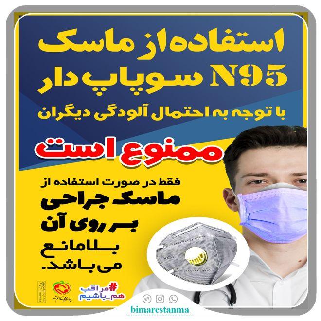 اخبار 05 مرداد 1399 05 مرداد 1399 بازدید: 245 امتیاز: ( 0 Rating ) استفاده از ماسک N95 سوپاپ دار به تنهایی با توجه به احتمال آلودگی دیگران، ممنوع است و فقط در صورت استفاده از ماسک جراحی بر روی آن بلامانع می باشد. امتیاز کاربران لطفا رای دهید رای 1 رای 2 رای 3 رای 4 رای 5 قبلی بعدی