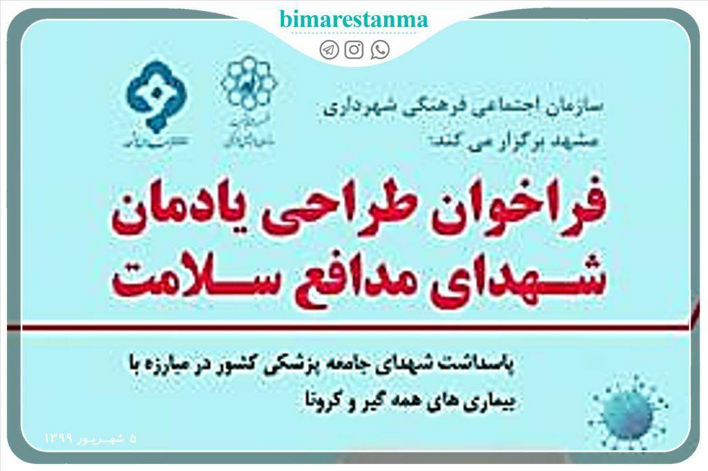 در راستای قدردانی از تلاش، ایثار و فداکاری کادر درمان و سلامت کشور در عرصه سلامت و آرامش مردم به ویژه در شرایط فعلی (شیوع بیماری کرونا) و پاسداشت مقام شهدای مدافع سلامت که در مسیر مراقبت از جان و درمان هموطنان از جان خویش گذشتند، شهرداری مشهد با هدف بهره گیری از توان هنرمندان طراح و مجسمه ساز برای طراحی اثری فاخر، فراخوان طراحی یادمان شهدای مدافع سلامت را منتشر می کند. ▪️هنرمندان می بایست صرفا فایل تصاویر و توضیحات طرح3D یا ماکت پیشنهادی خود در موضوعات فراخوان حداکثر تا تاریخ 31 شهریورماه 1399 به نشانی ایمیل این آدرس ایمیل توسط spambots حفاظت می شود. برای دیدن شما نیاز به جاوا اسکریپت دارید ارسال نمایند.▪️جهت کسب اطلاعات بیشتر، شرح فراخوان از طریق لینک زیر در دسترس قرارگرفته است. http://art.mashhad.ir/parameters/mashhad/modules/cdk/upload/content/news/File/75/shhadasalamat.pdf |