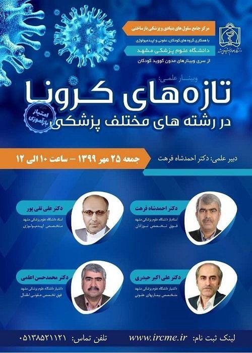🔷️در این وبینار که شرکت در آن دارای امتیاز آموزشی است اساتیدی همچون دکتر علی اکبر حیدری دانشیار گروه بیماری های عفونی، دکتر محمد حسن اعلمی دانشیار گروه عفونی کودکان، دکتر علی تقی پوراستاد گروه اپیدمیولوژی و دکتر احمد شاه فرهت استادیار گروه نوزادان سخنرانی خواهند داشت. 🔷️گروه های هدف می توانند با مراجعه به نشانی www.ircme.ir و یا تماس با شماره 05138521121 نسبت به نام نویسی اقدام کنند. |