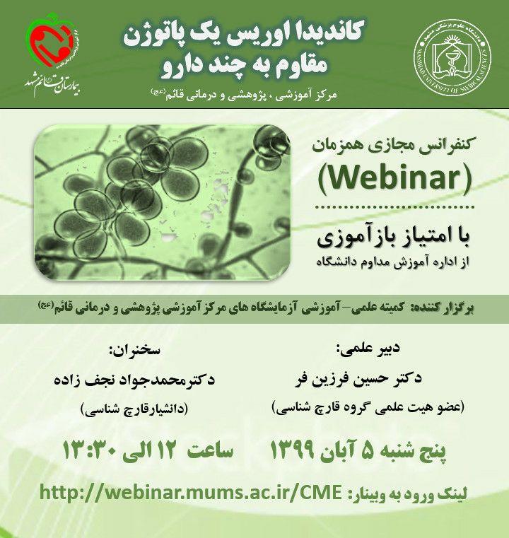 اخبار 30 مهر 1399 30 مهر 1399 بازدید: 241 امتیاز: ( 0 Rating ) وبینار کاندیدا اوریس یک پاتوژن مقاوم به چند دارو امتیاز کاربران لطفا رای دهید رای 1 رای 2 رای 3 رای 4 رای 5 ▪️برگزار کننده: کمیته علمی آموزشی آزمایشگاه های مرکز آموزشی، پژوهشی و درمانی قائم عج ▫️پنج شنبه ۵ آبان ۱۳۹۹ ▫️ساعت ۱۲ الی ۱۳:۳۰ قبلی بعدی
