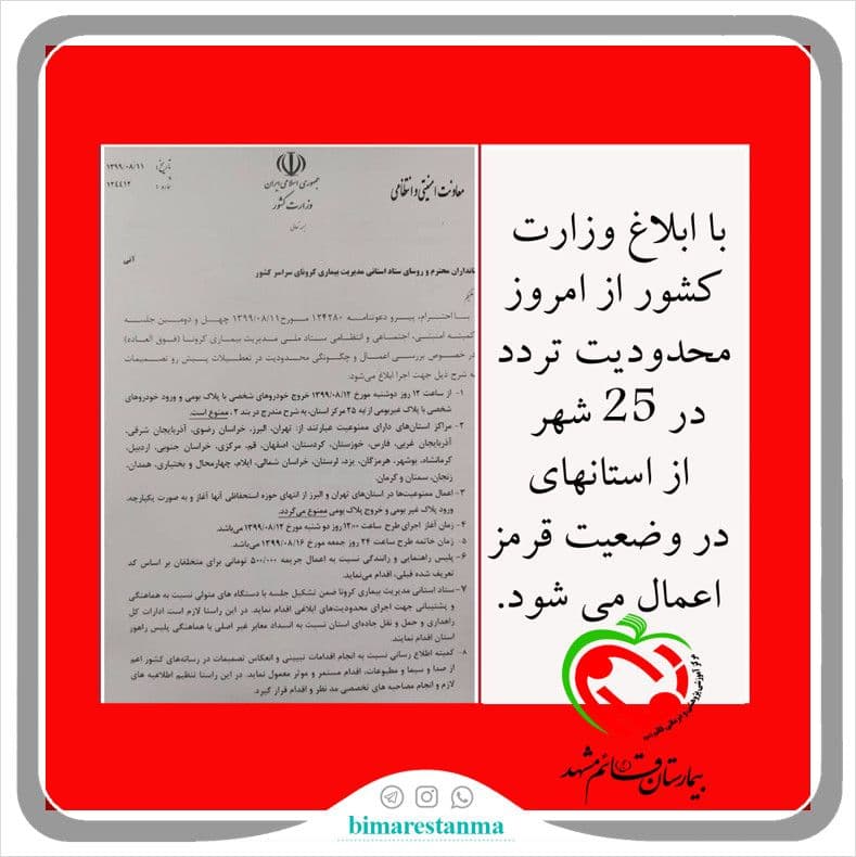اخبار 14 آبان 1399 14 آبان 1399 بازدید: 166 امتیاز: ( 0 Rating ) ابلاغ وزارت کشور در خصوص محدودیت های تردد در تعطیلات پیش رو به ۲۵ استان کشور امتیاز کاربران لطفا رای دهید رای 1 رای 2 رای 3 رای 4 رای 5 قبلی بعدی