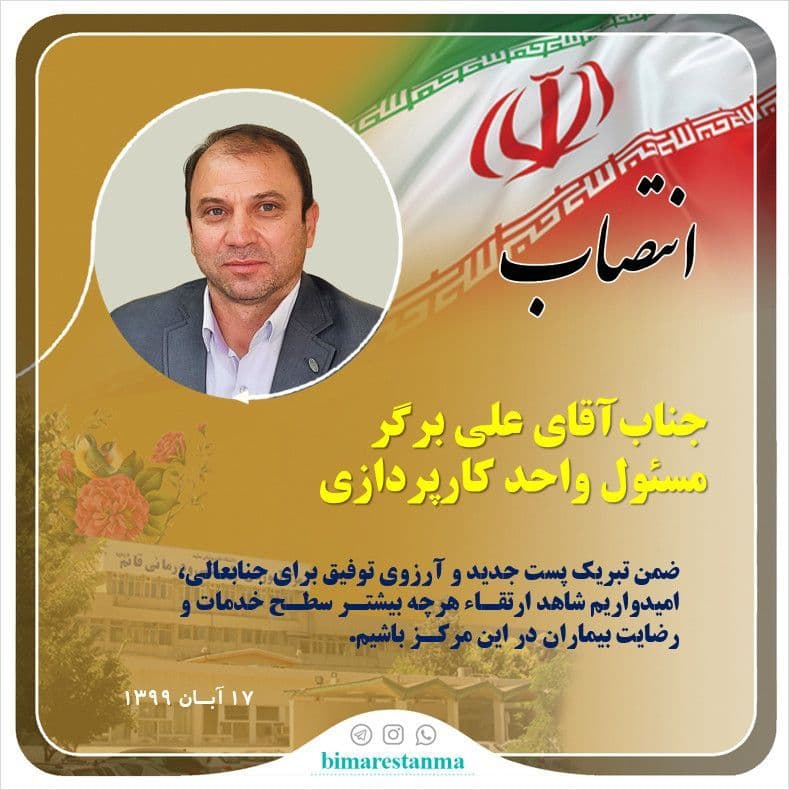 اخبار 18 آبان 1399 18 آبان 1399 بازدید: 225 امتیاز: ( 0 Rating ) انتصاب جناب آقای علی برگر ،به عنوان مسئول واحد کارپردازی بیمارستان قائم (عج) امتیاز کاربران لطفا رای دهید رای 1 رای 2 رای 3 رای 4 رای 5 قبلی بعدی