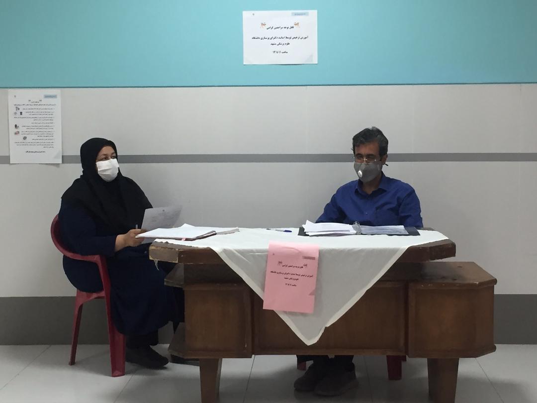 ۲. آموزش همراهیان و مراجعین در زمینه پیشگیری و مراقبتهای کووید به صورت حضوری