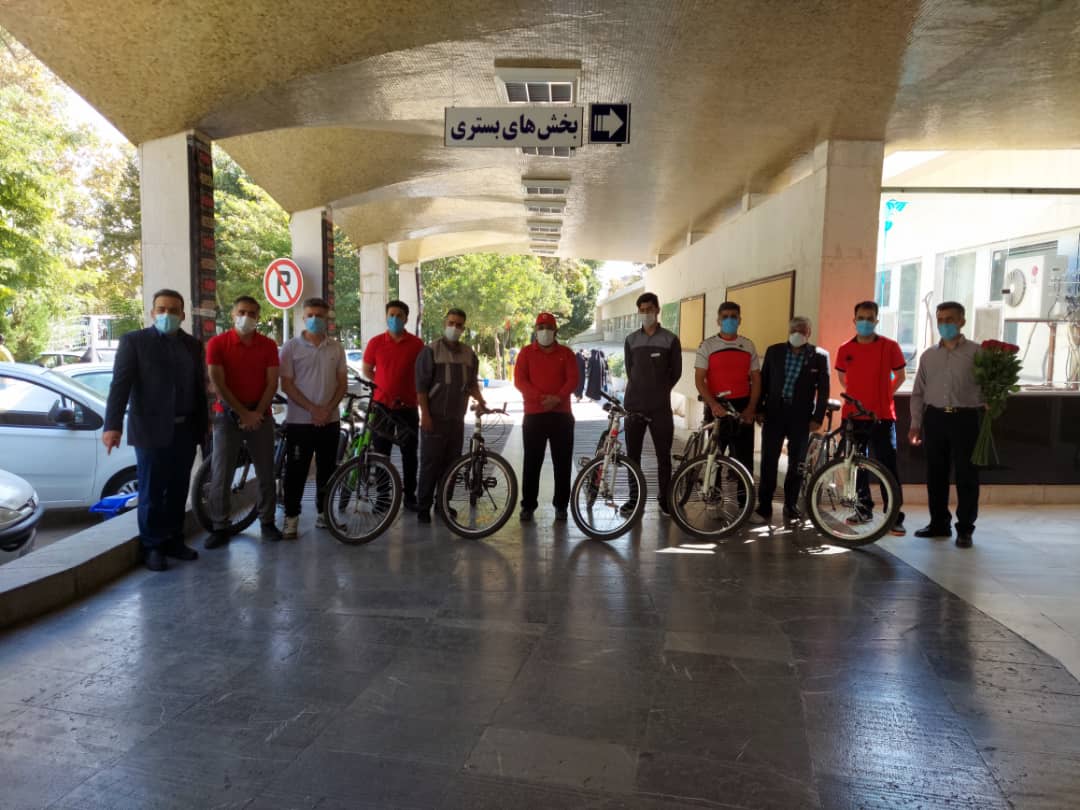 در این مراسم که در لابی بیمارستان قائم(عج) برگزار گردید تیم دوچرخه سوار با هدف ترویج فرهنگ استفاده از دوچرخه و هوای پاک با اهدای هدایایی از کادر پشتیبانی و درمان تقدیر کردند. همچنین تعدادی از همکاران گروه خدمات مرکز، که در ایام کرونا در بخشهای کووید و سایر واحدهای پشتیبانی از هیچ تلاش وخدمتی به بیماران و مراجعین بیمارستان فروگذار نداشتهاند نیز در این مراسم حضور داشتند.