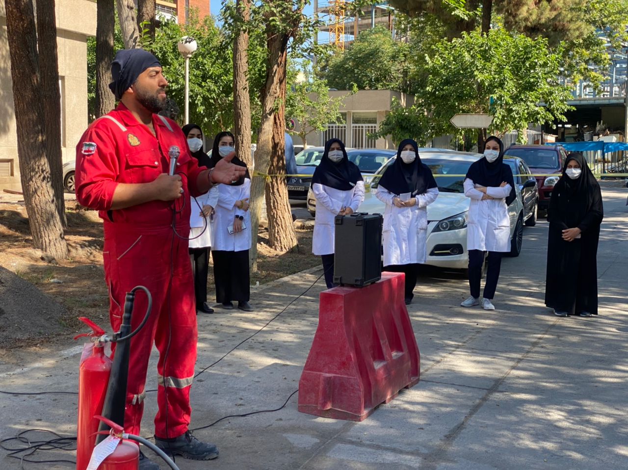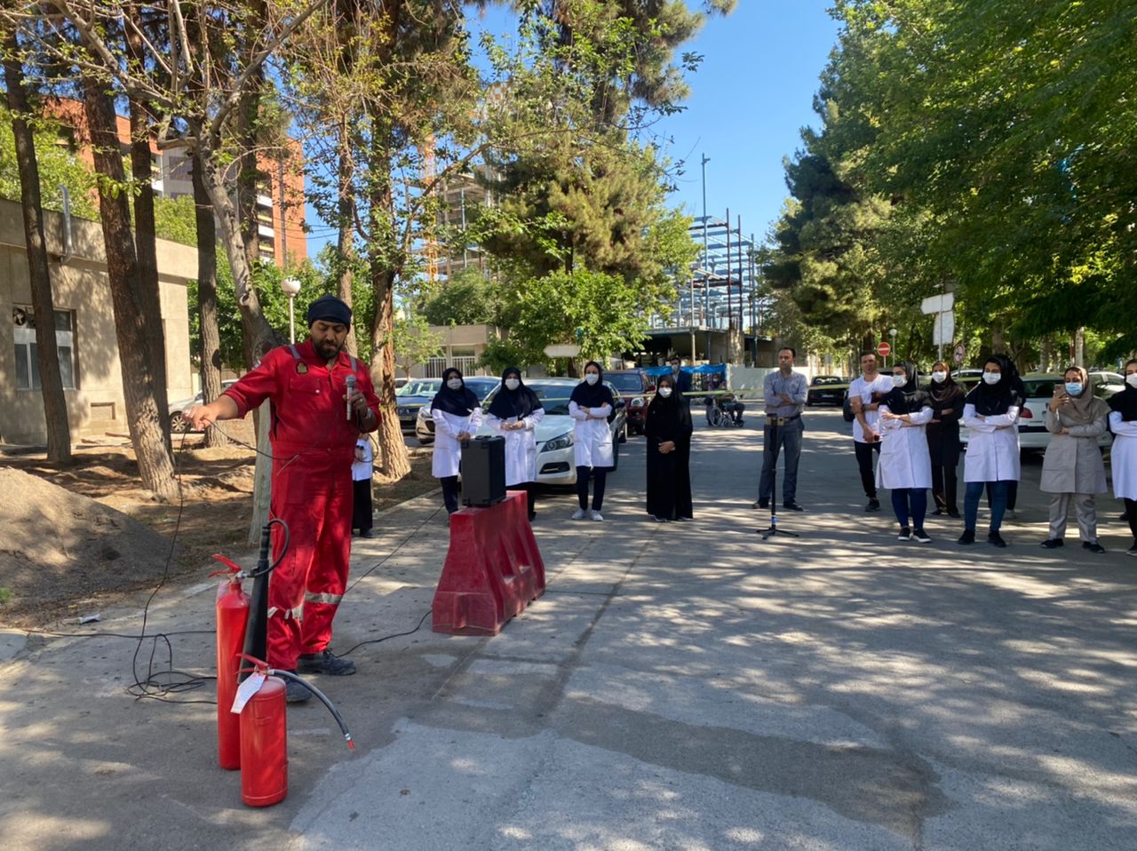 این مانور که با هدف سنجش میزان آمادگی تیم مدیریت بحران بیمارستان در هنگام بروز حوادث غیرمترقبه، در حضور جمعی از مدیران ، کارشناسان و تیم مدیریت بحران برگزار شد، آقای صفری کارشناس سازمان آتش نشانی، توضیحات جامعی را در مورد انواع حریق و مهار آن با استفاده از کپسول های اطفاء حریق بیان نمود.