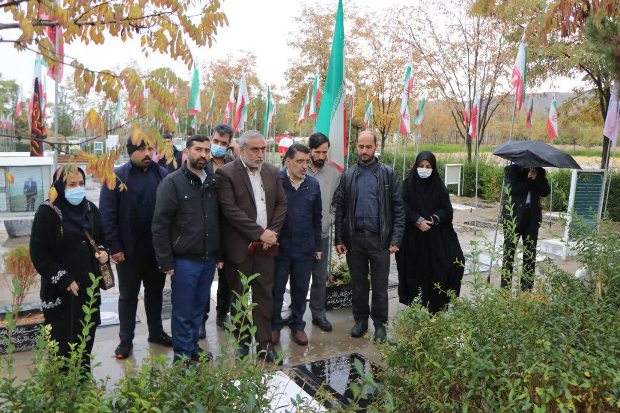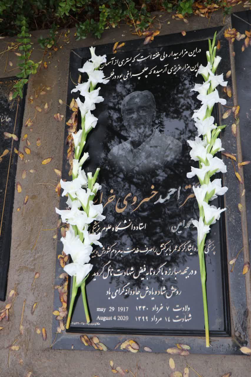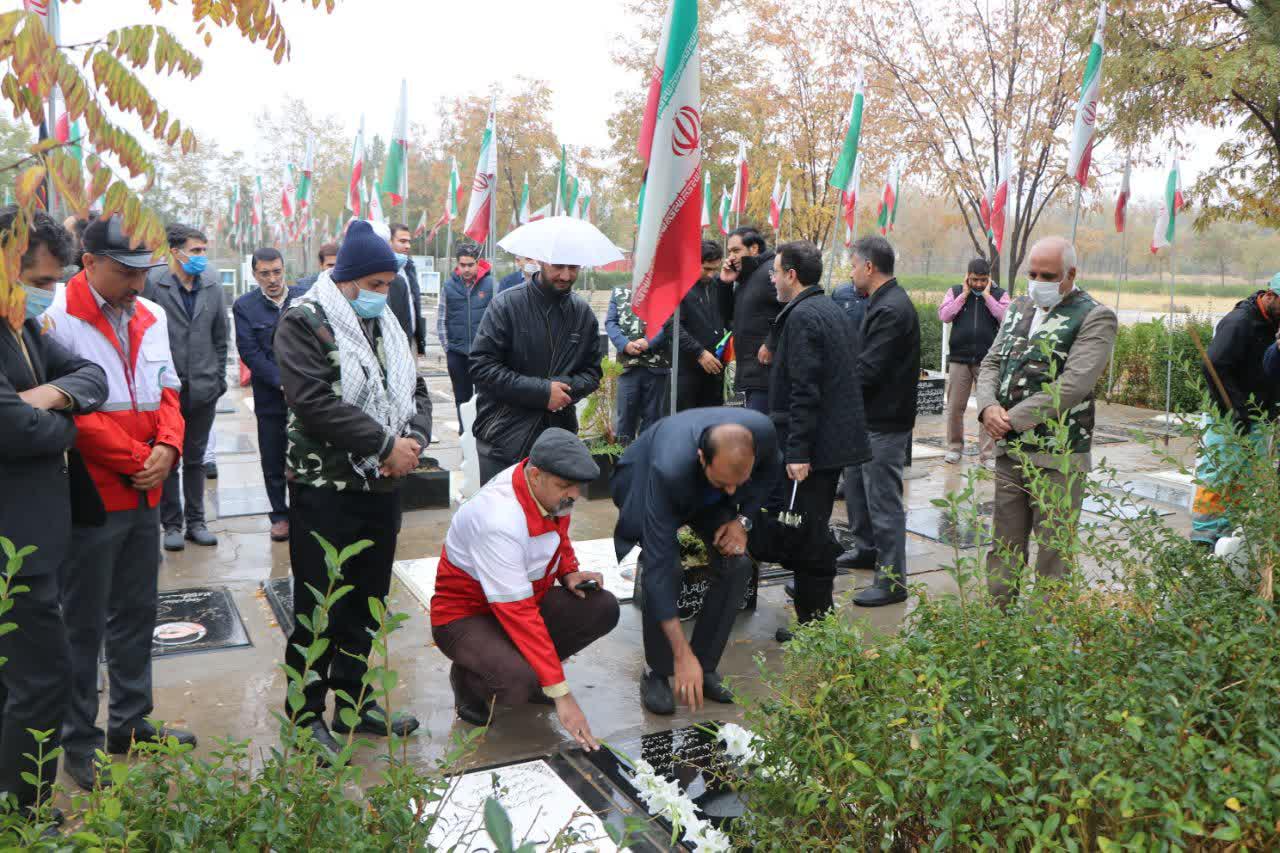 پنج شنبه دوازدهم آبان ماه جمعی از مسئولین و کارکنان دانشگاه علوم پزشکی ، مزار مطهر دکتر خسروی خراشاد ، شهید مدافع سلامت را غبار روبی و عطر افشانی کردند و به این شهید گرانقدر ادای احترام نمودند.