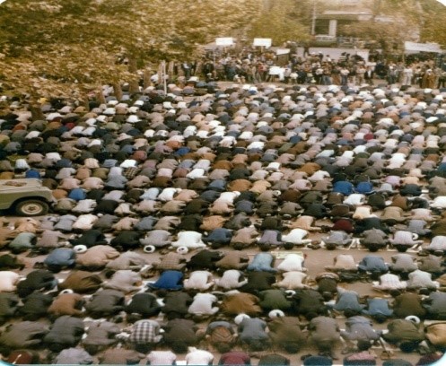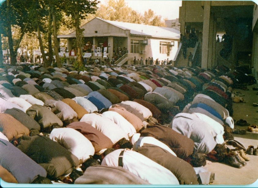 برنامه ها همچنان ادامه داشت تا موقع اذان ظهر. پس از گفتن اذان . نمازجماعت در محوطه جلوی باشگاه برگزار شد. جمعیتی بسیار زیاد ودر حال نماز جماعت بیان کننده خواست ونیت انها که دنبال حکومت اسلامی بودند.