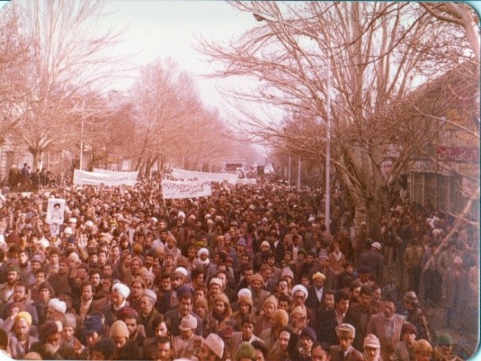 عکس یکی از راه پیمایی های مردم در دوران میارزه با رژیم ستم شاهی وحرکت به سوی بیمارستان
