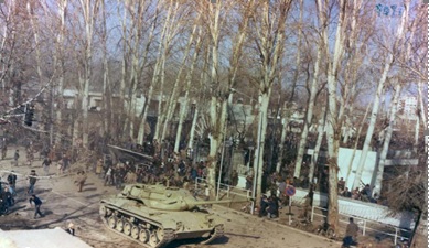 نماز جماعت مردم در محوطه جلوی باشگاه وداخل بیمارستان ودر محاصره تانکهای حکومت نظامی