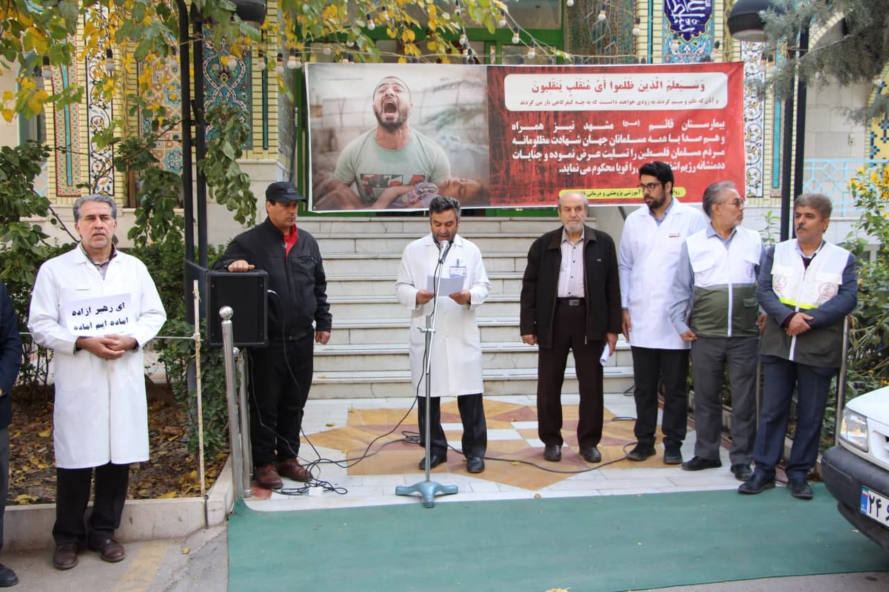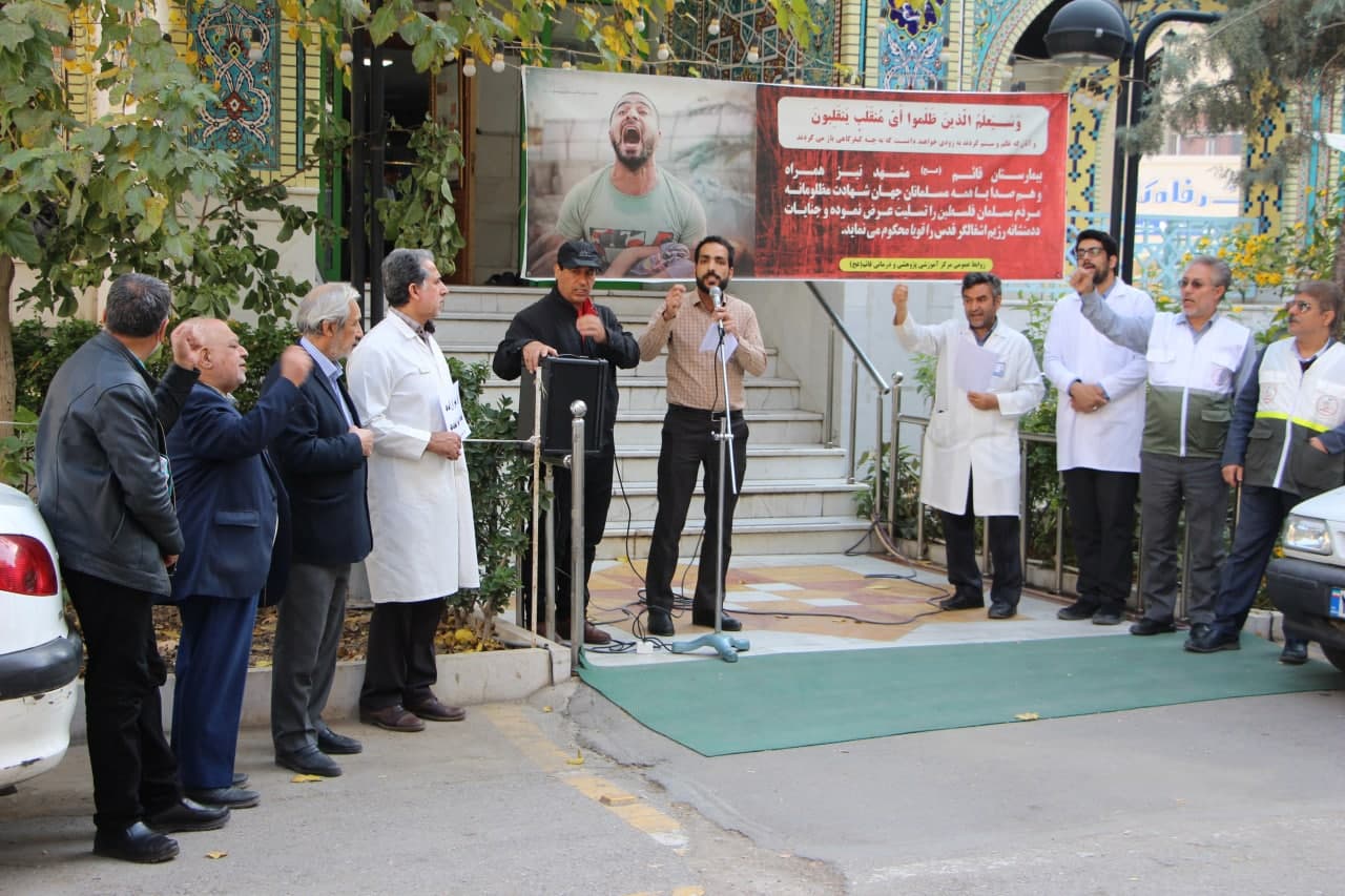امروز دوشنبه 22 آبان ماه 1402 ، کادر درمان بیمارستان قائم(عج) در حمایت از مردم مظلوم فلسطین و غزه و در محکومیت از حملات وحشیانه رژیم صهیونیستی به غزه در محوطه بیمارستان تجمع کردند .