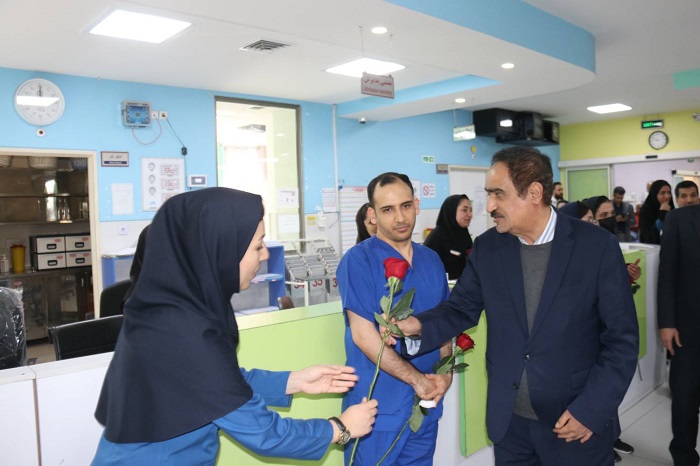 رئیس دانشگاه علوم پزشکی مشهد همزمان با تعطیلات نوروزی ضمن بازدید از بخش های مختلف بیمارستان قائم(عج) و عیادت از بیماران از تلاش کادر درمان در خدمت رسانی به زائران و مجاوران رضوی در روزهای آغازین سال جدید قدردانی کرد.