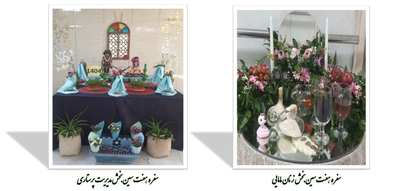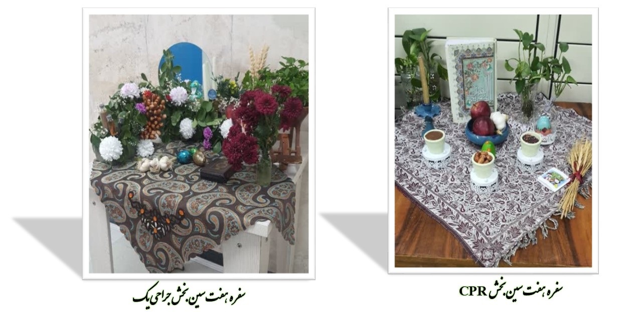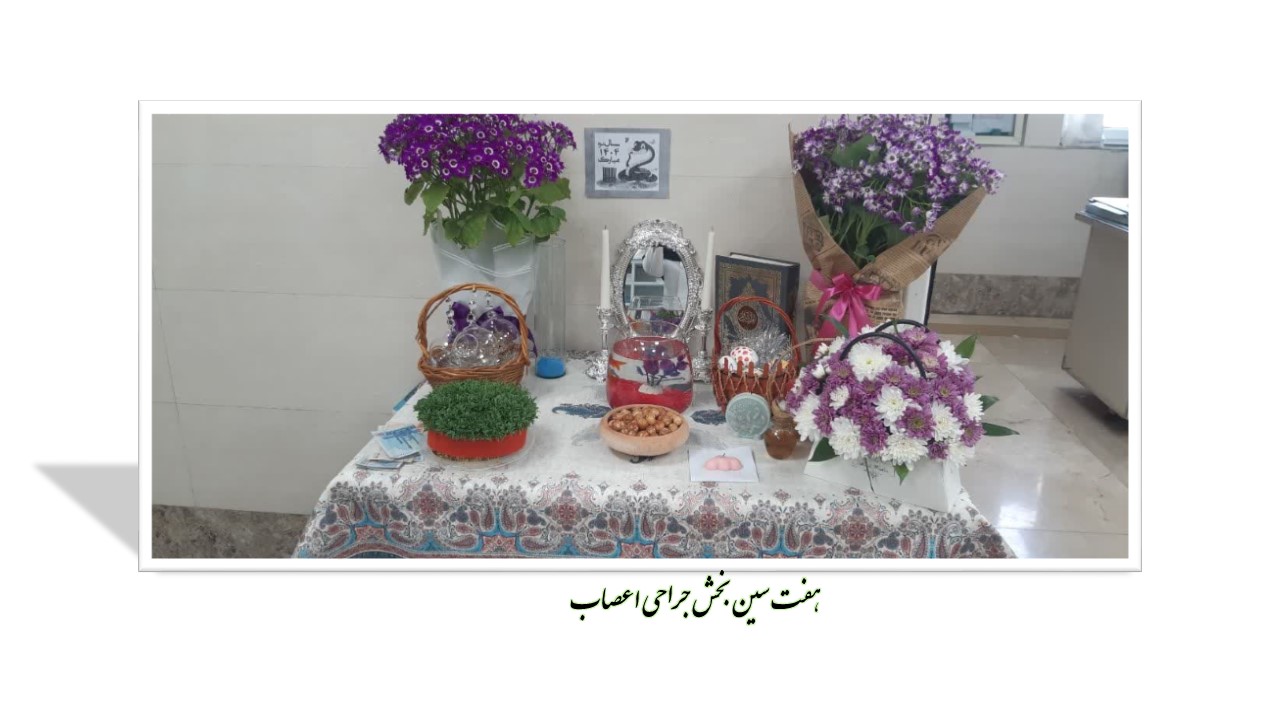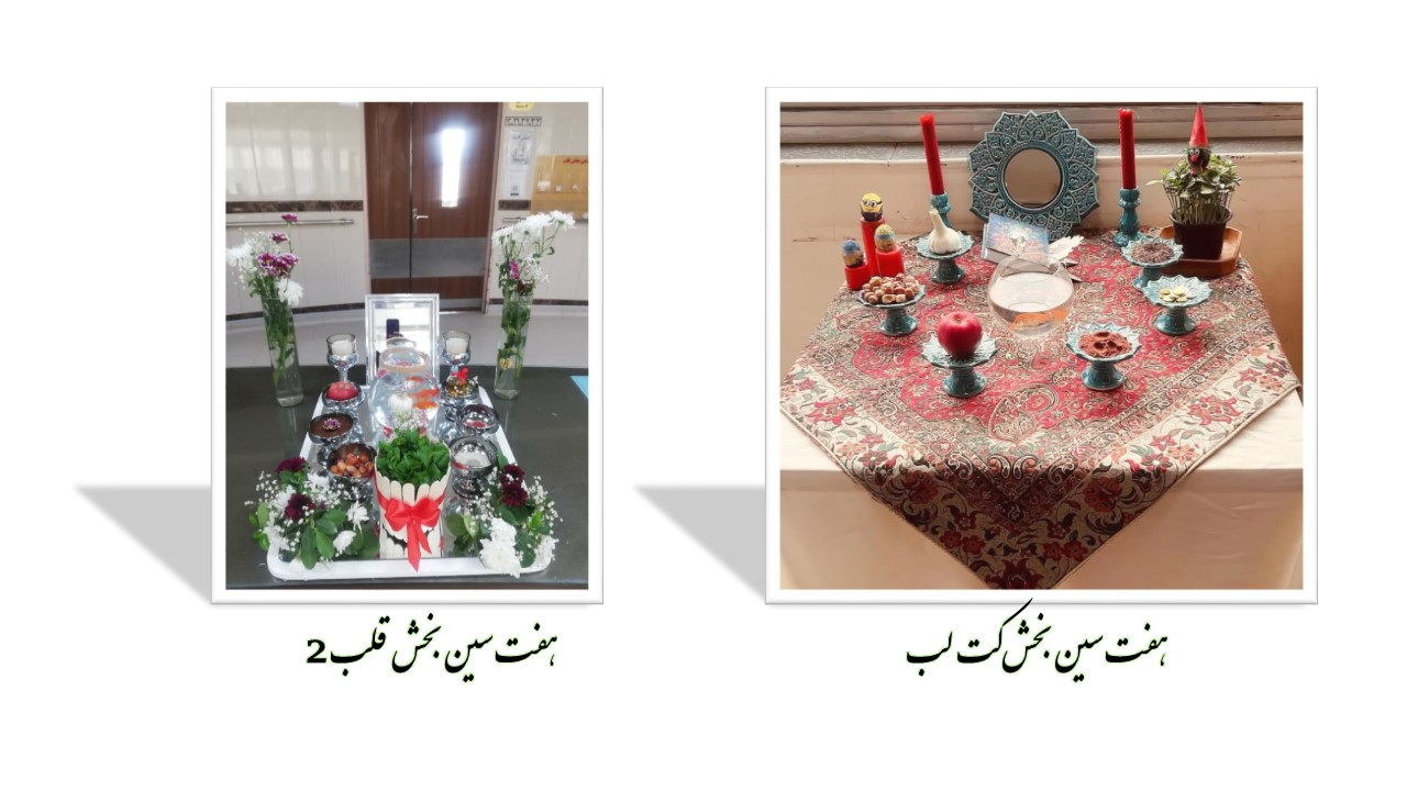 هر یک از بخشهای بیمارستان با خلاقیت و ذوق خاصی سفرههای هفتسین را تزیین کردهاند و هر کدام از این سفرهها پیامهای امیدبخشی مانند سلامتی، شفا و آرامش را به بیماران هدیه میدهند.