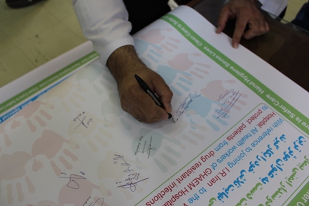 | در راستای نیل به هدف، بیمارستان دوستدار ایمنی بیمار، اساتید، مسئولین و کارکنان بیمارستان قائم (عج) متعهد شدند که در حهت رعایت اصول بهداشت دست نهایت تلاش خود را بکار گیرند. | ||