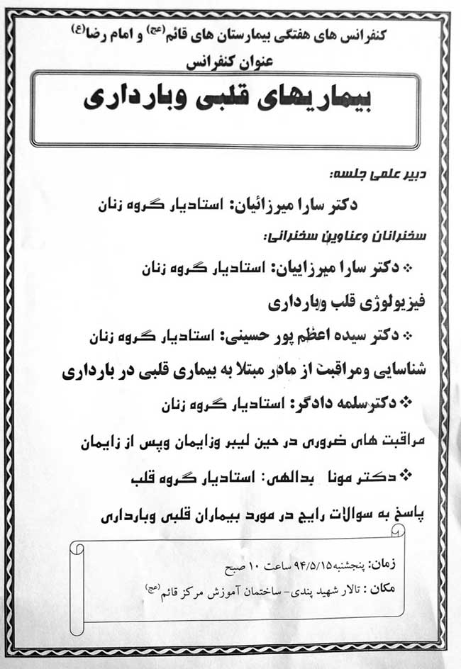 اخبار 14 مرداد 1394 14 مرداد 1394 بازدید: 762 امتیاز: ( 0 Rating ) کنفرانس علمي امتیاز کاربران لطفا رای دهید رای 1 رای 2 رای 3 رای 4 رای 5 کنفرانس هفتگي بيماريهاي قلبي و بارداري 15 مرداد 1394 سالن شهيد پندي قبلی بعدی