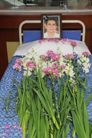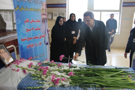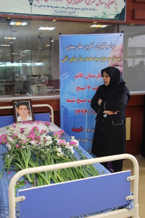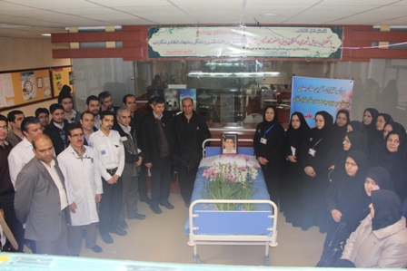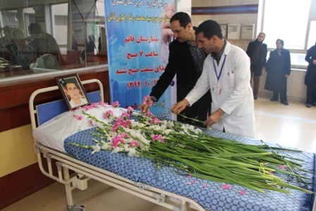 | مراسم گلباران آخرین مکان بستری پرستار مرحوم سید محمد رضا رضایی ثانی در بیمارستان با حضور ریاست محترم مرکز ، اعضا محترم هئیت علمی ، پرسنل محترم پرستاری مرکز و سازمان نظام پرستاری انجام شد |