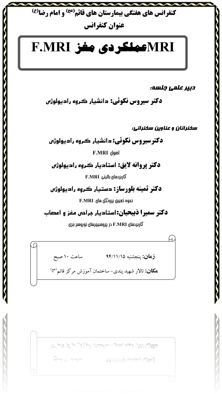 اخبار 14 بهمن 1394 14 بهمن 1394 بازدید: 383 امتیاز: ( 0 Rating ) کنفرانس هفتگی بیمارستان قائم(عج) با موضوع "MRI عملکردی مغز F.MRI" امتیاز کاربران لطفا رای دهید رای 1 رای 2 رای 3 رای 4 رای 5 کنفرانس هفتگی بیمارستان قائم(عج) با موضوع "MRI عملکردی مغز F.MRI" قبلی بعدی